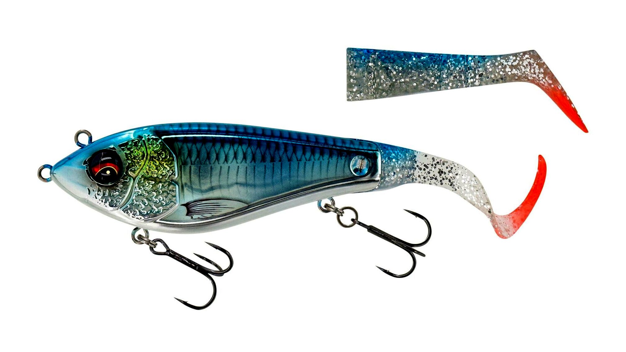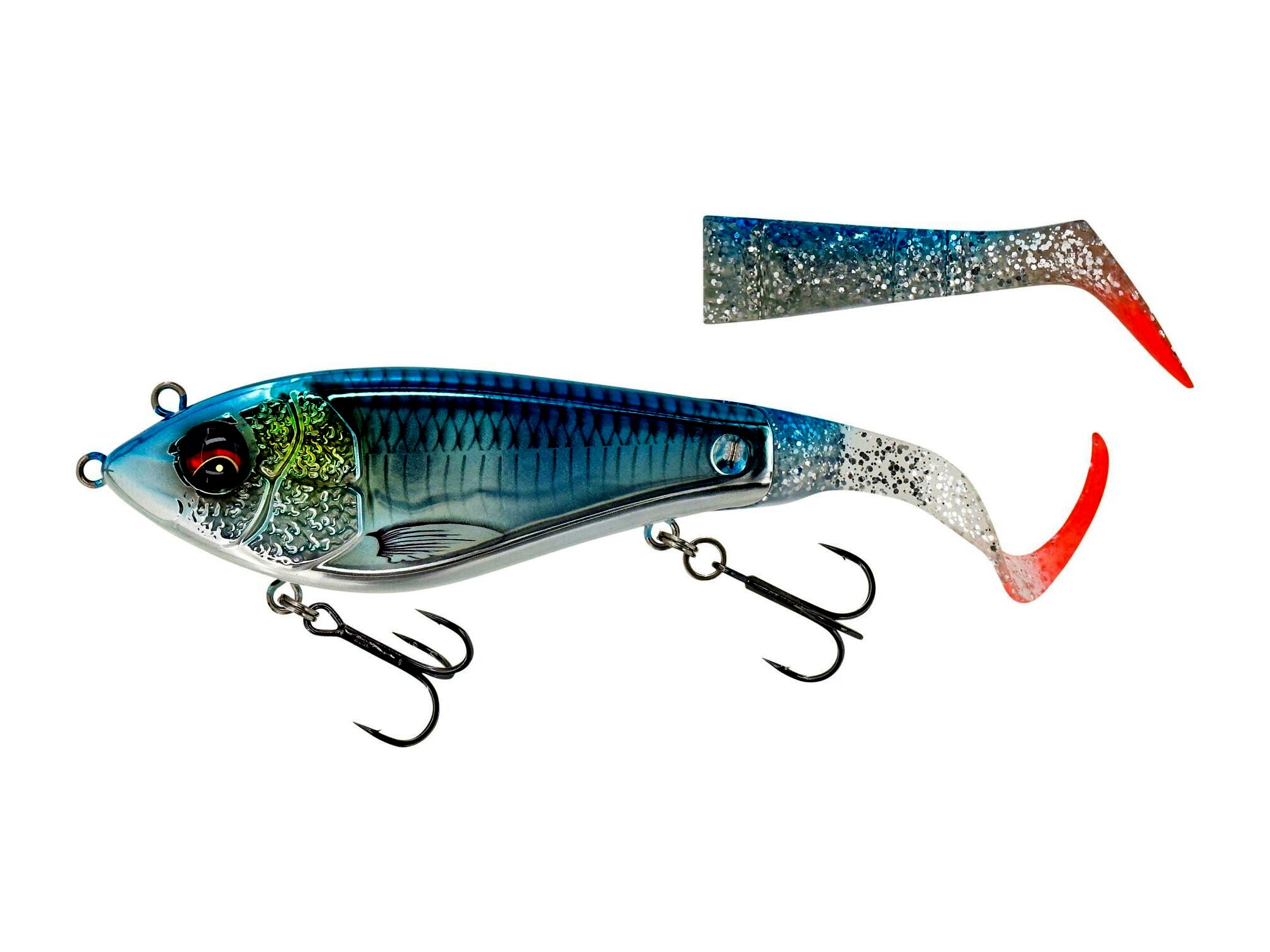 Egy nagyszerű hibrid műcsali, amely rendkívül élénk és pörgős mozgással rendelkezik: a pálcafarokkal frenetikus rúgás és a mini hullámos farokkal őrült sikló mozgás. A két kötőpont lehetővé teszi a műcsali munkálását a sekély víztől közepes mélységig. A Unique Cross jaw lock farok rendszer tökéletes helyzetben tartja a farokrészeket, és lehetővé teszi a farokgyors és biztos cseréjét vagy a farokirány változtatását. Így a műcsalit farok felfelé vagy lefelé is horgászhatod, teljesen más munkamélységet és mozgási mintát hozva létre. Összességében egy rendkívül sokoldalú farok csali - hosszú dobásteljesítménnyel, ami kiváló kereső csali! Pont úgy, mint a Deviator Swim, ez a klasszikus csuka csali lesz!