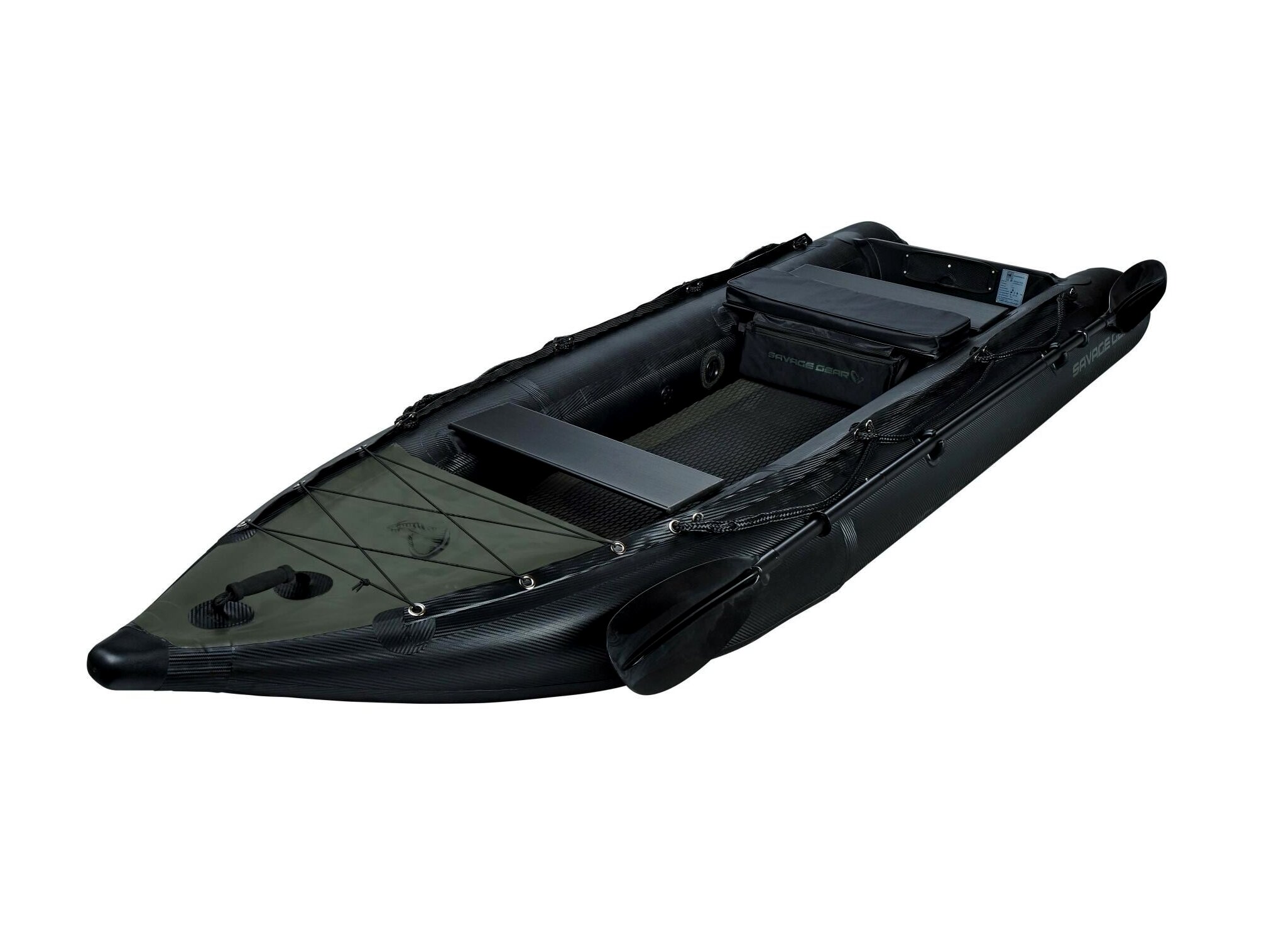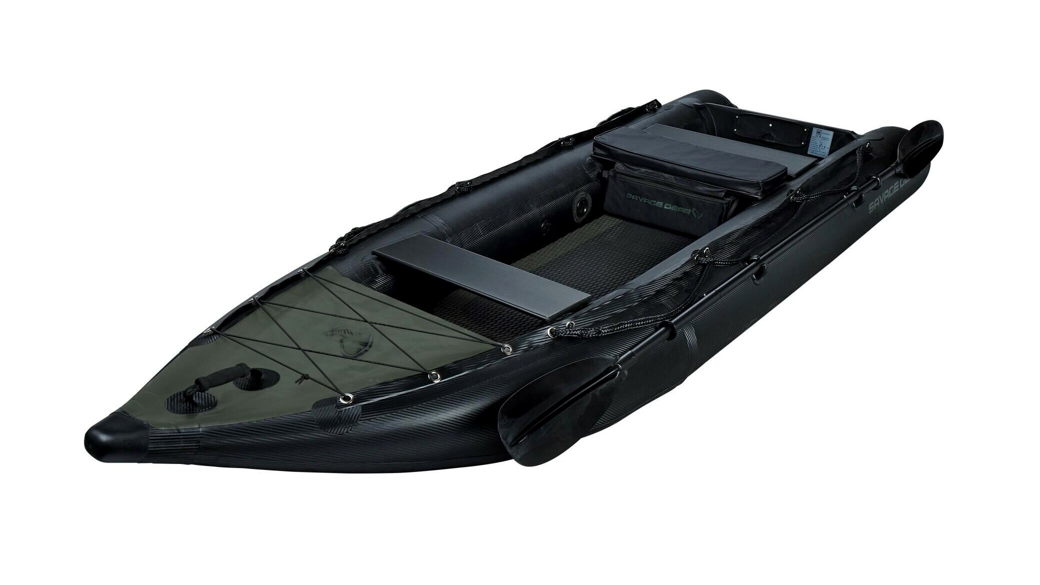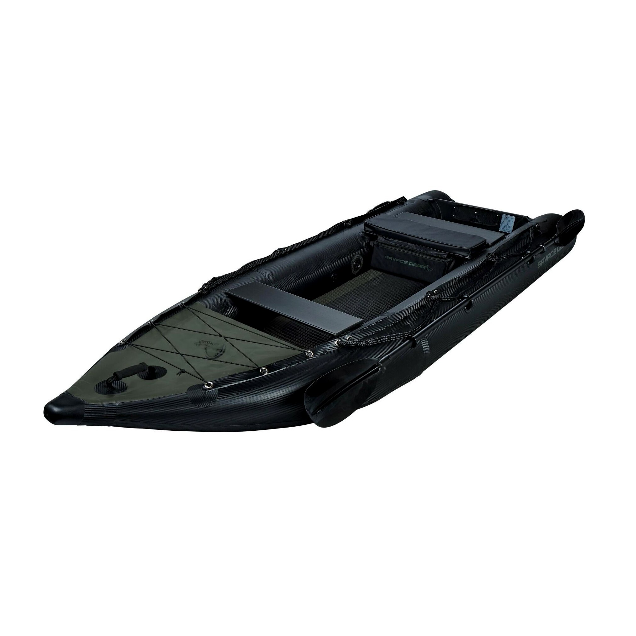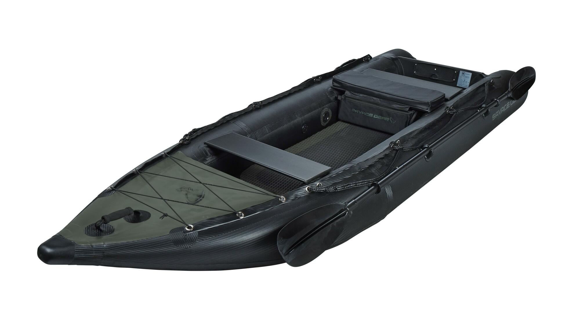 Könnyű, felfújható kajak, amely könnyedén mozgatható, mégis kiváló stabilitást nyújt – tökéletes megoldás kisebb vizek felfedezéséhez, ahová nagyobb csónakokkal nem lehet eljutni. Akár 55lb tolóerejű (2LE) villanymotorhoz tervezve. Az oldalfalak 0,90 mm vastag, szövött karbon mintázatú PVC-ből készültek. A felfújható, drop stitch padló csúszásgátló és extra védőréteget kapott, az alján pedig hosszított kopásálló csúszótalpak találhatók. Méretek: 330 × 110 cm. A csomag tartalmaz egy javítókészletet, egy nyomásmérős kézipumpát, egy 5 cm vastag párnázott üléses táskát, valamint egy túlméretezett csattal ellátott szállítópántot.