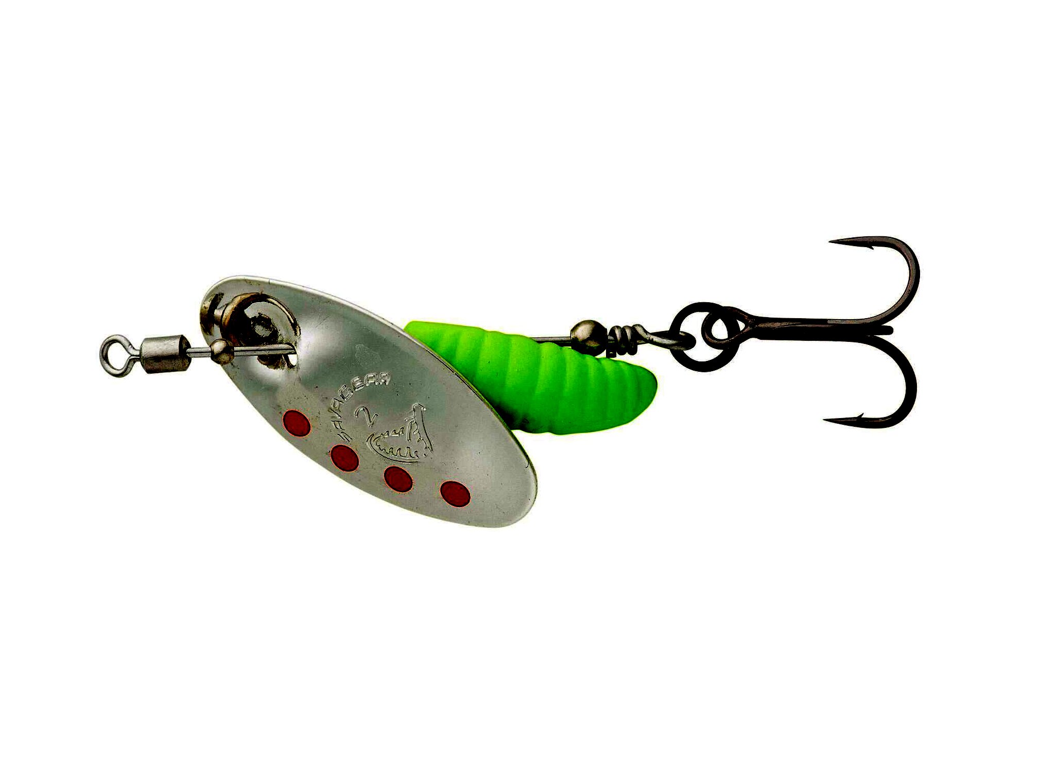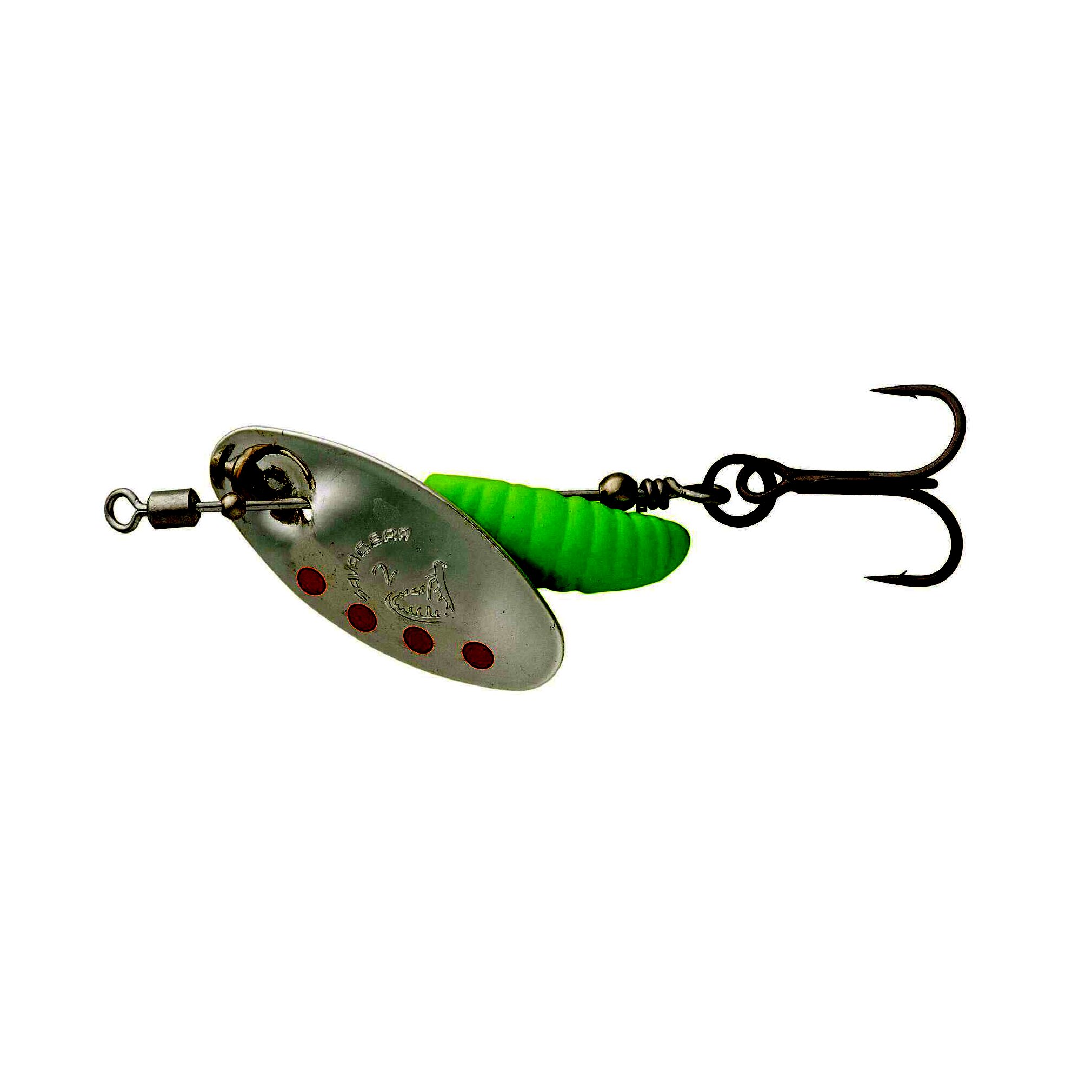 Az eltolt kukac alakú test egyedi akcióval kombinálva azt eredményezi, hogy ez a körforgó garantáltan elcsábítja az éhes ragadozókat. A finom úszótestet tökéletesen kiegészíti a forgó villogó penge, hogy megragadja a közelben lévő rablóhalak figyelmét. A beépített forgó tengely segít elkerülni a zsinór csavarodását az ismételt dobások során, és az ultraéles SGY 1X tripla horgoknak és a GPS egyhorgoknak köszönhetően az akadási arány is kiváló.