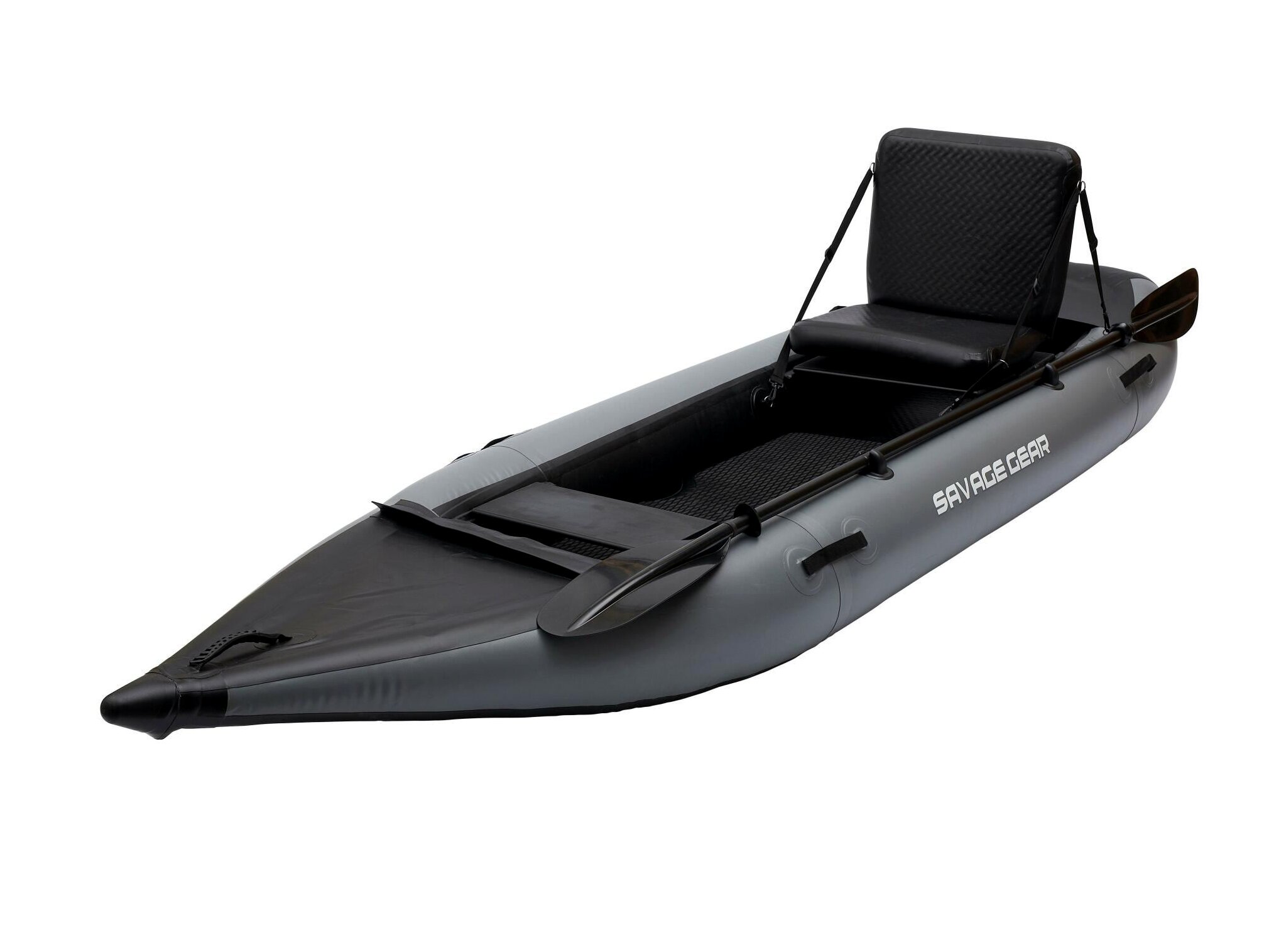 Szuper stabil kajak, horgászatra tökéletesen alkalmas. Magasan és kényelmesen lehet ülni benne, jóval a víz szintje felett, a bottartókkal ellátott, felfújható ülésben. A kajak nagyon könnyen manőverezhető, szinte ellenállás nélkül siklik a vízen. Horgászok tervezték horgászoknak!