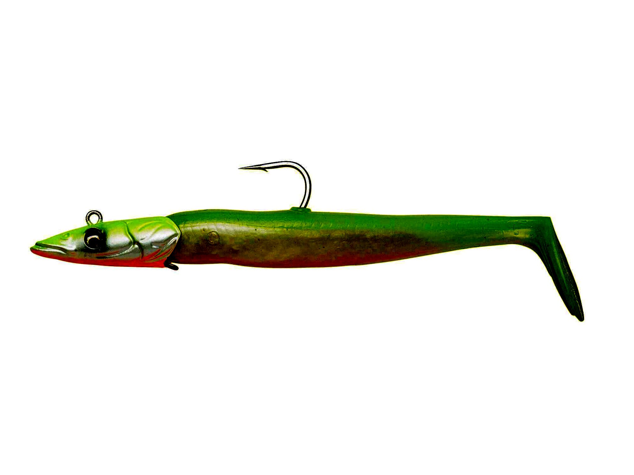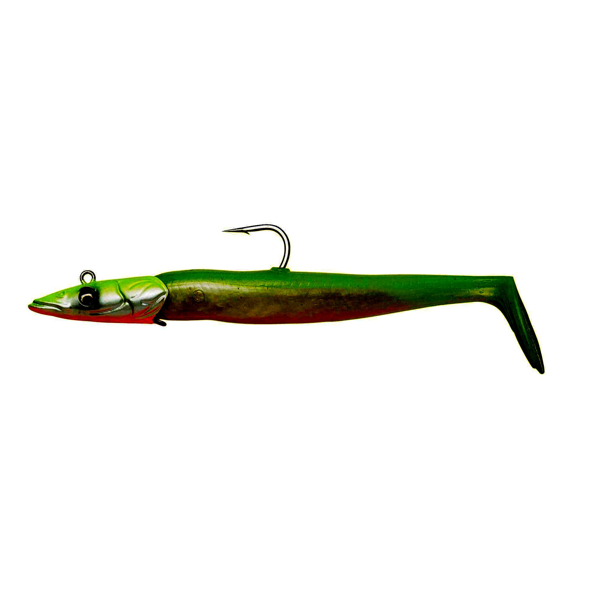 Intenzív verető mozgásával a bevontatás és visszahullás közben egyaránt, ez a szuperélethű homoki angolna utánzat a legválogatósabb ragadozókat is becsapja. Az egyedi jig fej elősegíti a csali billegő, tekergő mozgását. A Pro Peg holder lehetővé teszi, hogy a csalit egy fogpiszkáló darabbal a jigfejhez rögzítsük, ami nagyon egyszerű és biztonságosan megtartja azt. A puha PVC test egy belső üvegcsörgővel is el van látva, így a csali provokáló hangot bocsát ki a közelben vadászó ragadozók számára.