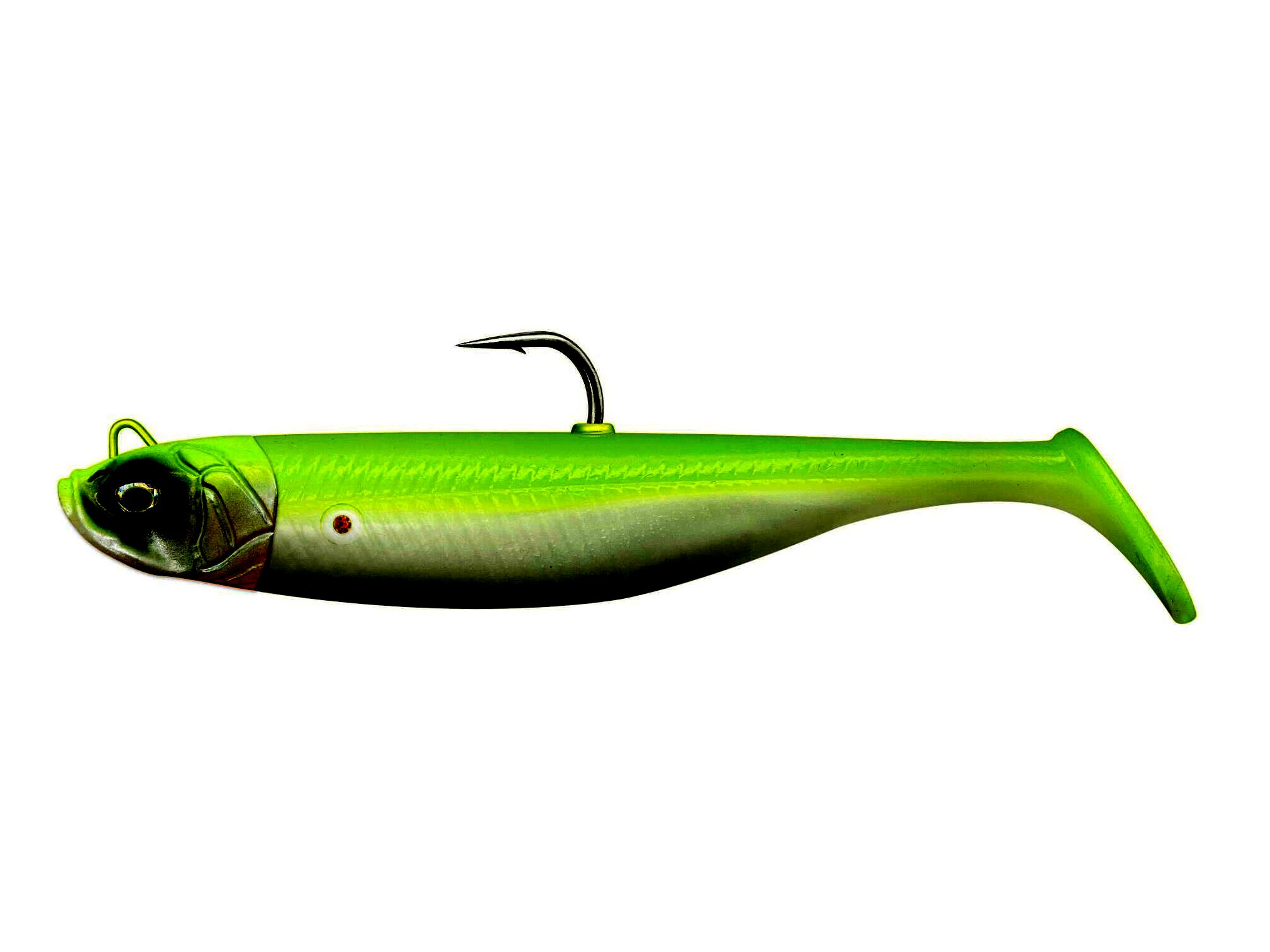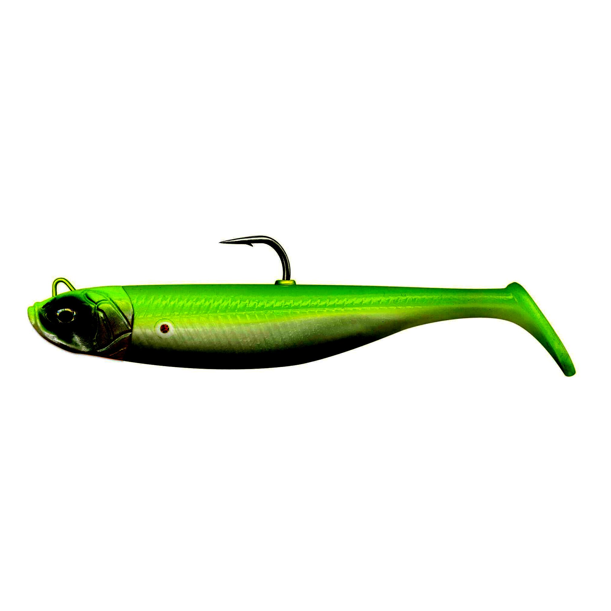 Az élénk veretésű apróhal-utánzatok sem visszahullás, sem vontatás közben nem sokkal lehetnek már ennél élethűbbek. A tökéletes mozgást biztosító egyedülálló rise & stand-up jigfej segítségével a csali emelkedik bevontatás közben, és felfelé áll, amikor a mederfenéken nyugszik. A Pro Peg holder lehetővé teszi, hogy a csalit egy fogpiszkáló darabbal a jigfejhez rögzítsük, ami nagyon egyszerű és biztonságosan megtartja azt. A puha PVC test egy belső üvegcsörgővel is el van látva, hogy a csali extra csábító hangot adjon.