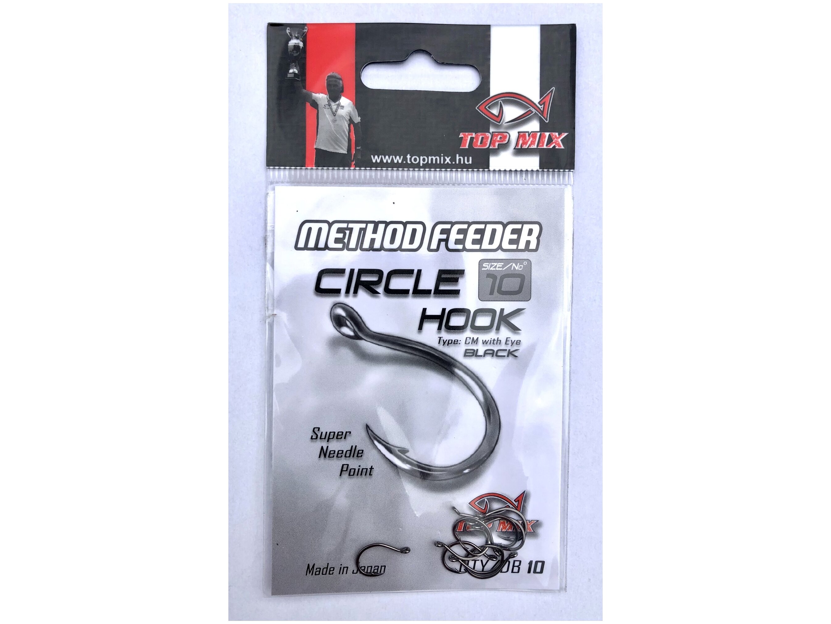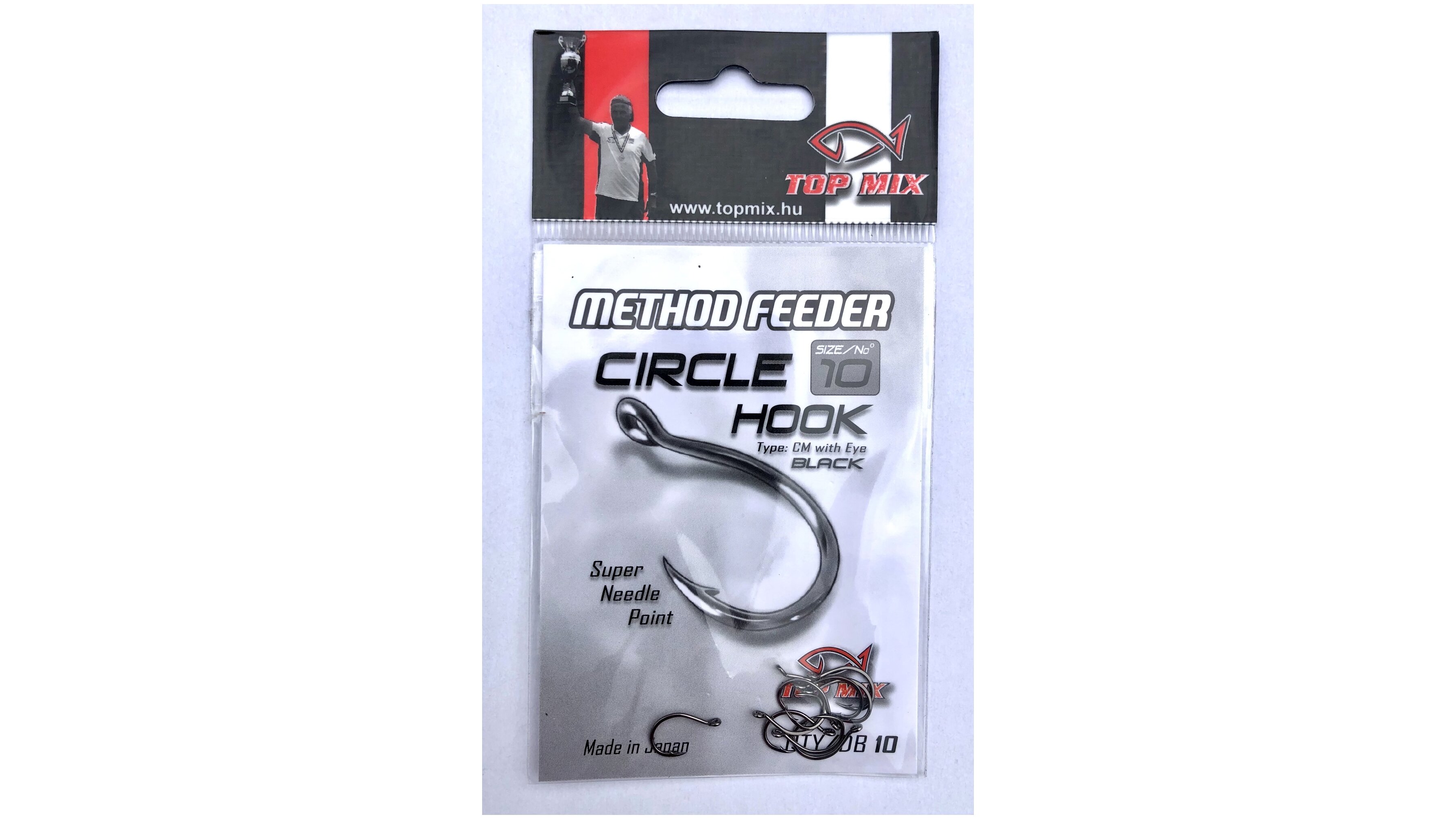 Japánban gyártott, csaknem köríves a method feeder horgászok körében igen kedvelt horog típus. Nagyöblű, csapott horoghegyű, rövid szárú, kiváló éltartó tulajdonságú, kémiai élezésű mikroszakállas, black nickel felületű füles horog. Elsősorban csalitüskés, vagy fűzött csalikhoz ajánljuk, legyen az pellet, wafters, bojli, vagy akár magvak.