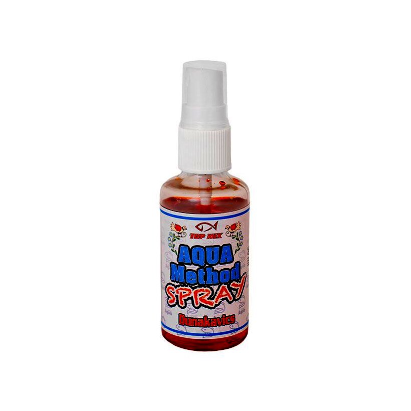 Az AQUA Method Spray olyan tömény aromakoncentrátum, amely a horogcsalik, a kosárba töltött pelletek, etetőanyagok gyors, külső aromásítását és színezését szolgálja. A hatás robbanásszerű lehet! A sprayt elsősorban a methodozásban leggyakrabban használt AQUA pelletekhez és az ezek felhasználásával készült method etetőkhöz fejlesztettük ki, de ez nem zárja ki, hogy más etetőkhöz és pelletekhez is eredményesen lehessen használni.