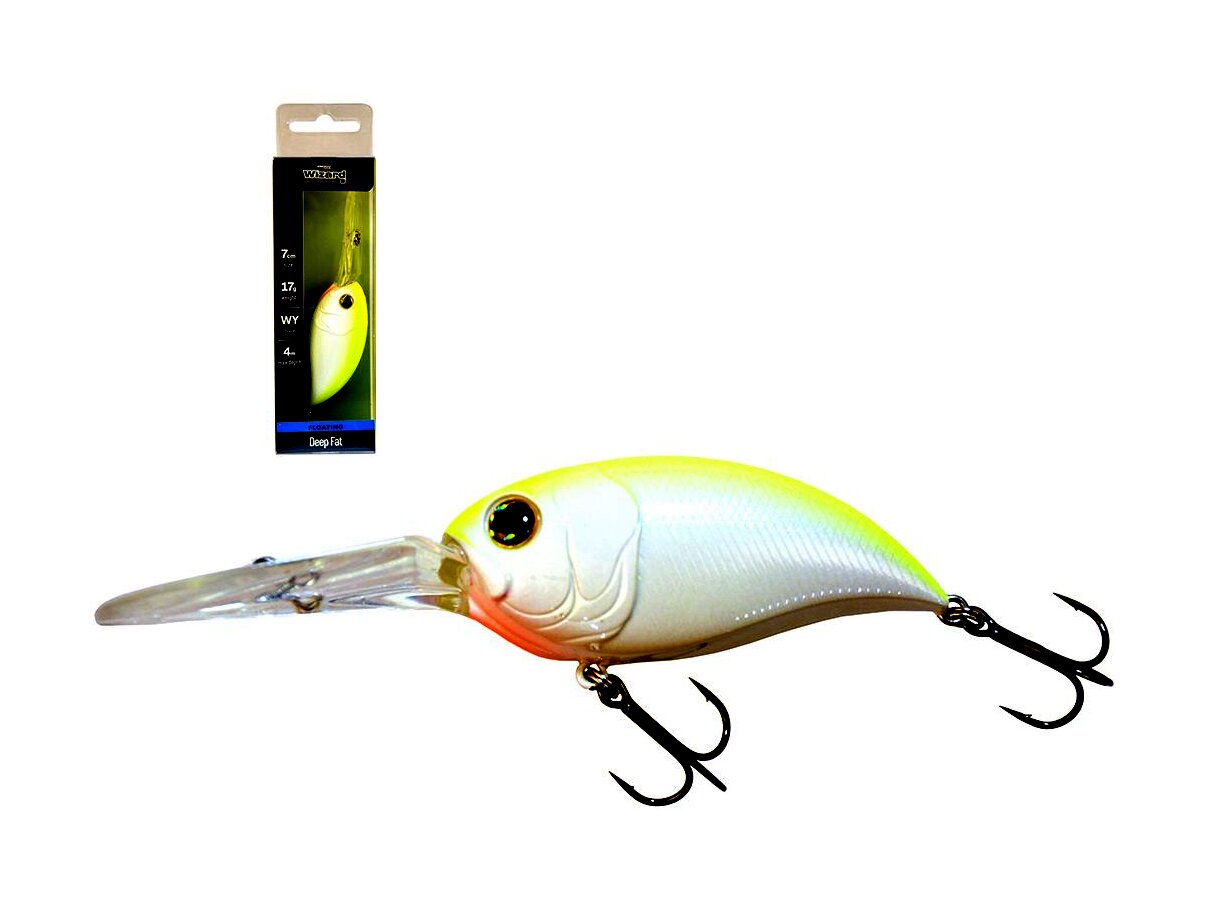 A Wizard Deep Fat Floating egy nagyteljesítményű, mélyenjáró wobbler, amely kifejezetten a mélyebb vizek meghorgászására készült. 4 méteres merülési mélységével, 7 cm-es testhosszával és 17 grammos súlyával ideális választás a nagyobb ragadozók – például csuka, süllő vagy balin – célzott horgászatához.